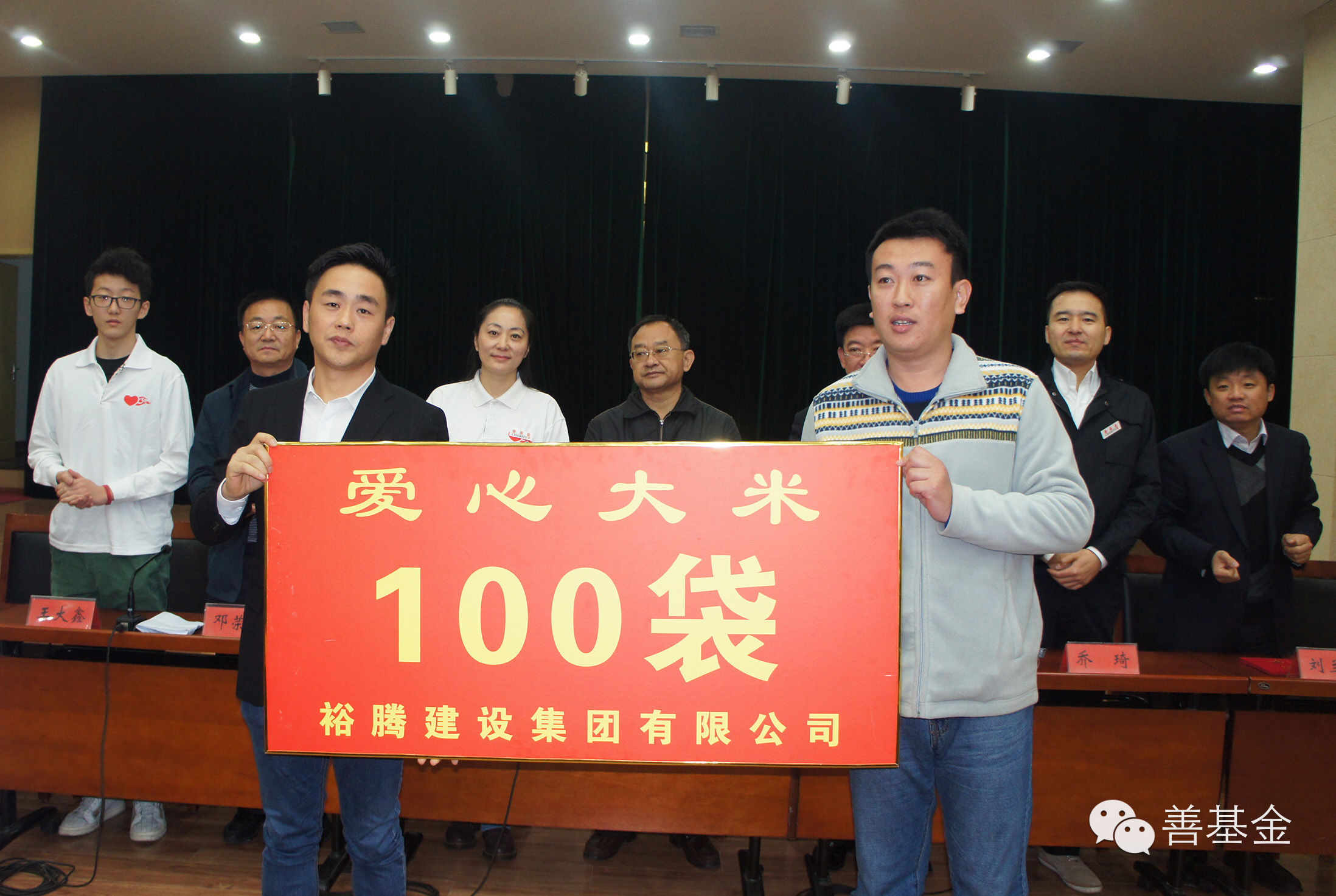沈海华总经理与王鹏局长交接爱心大米捐赠板